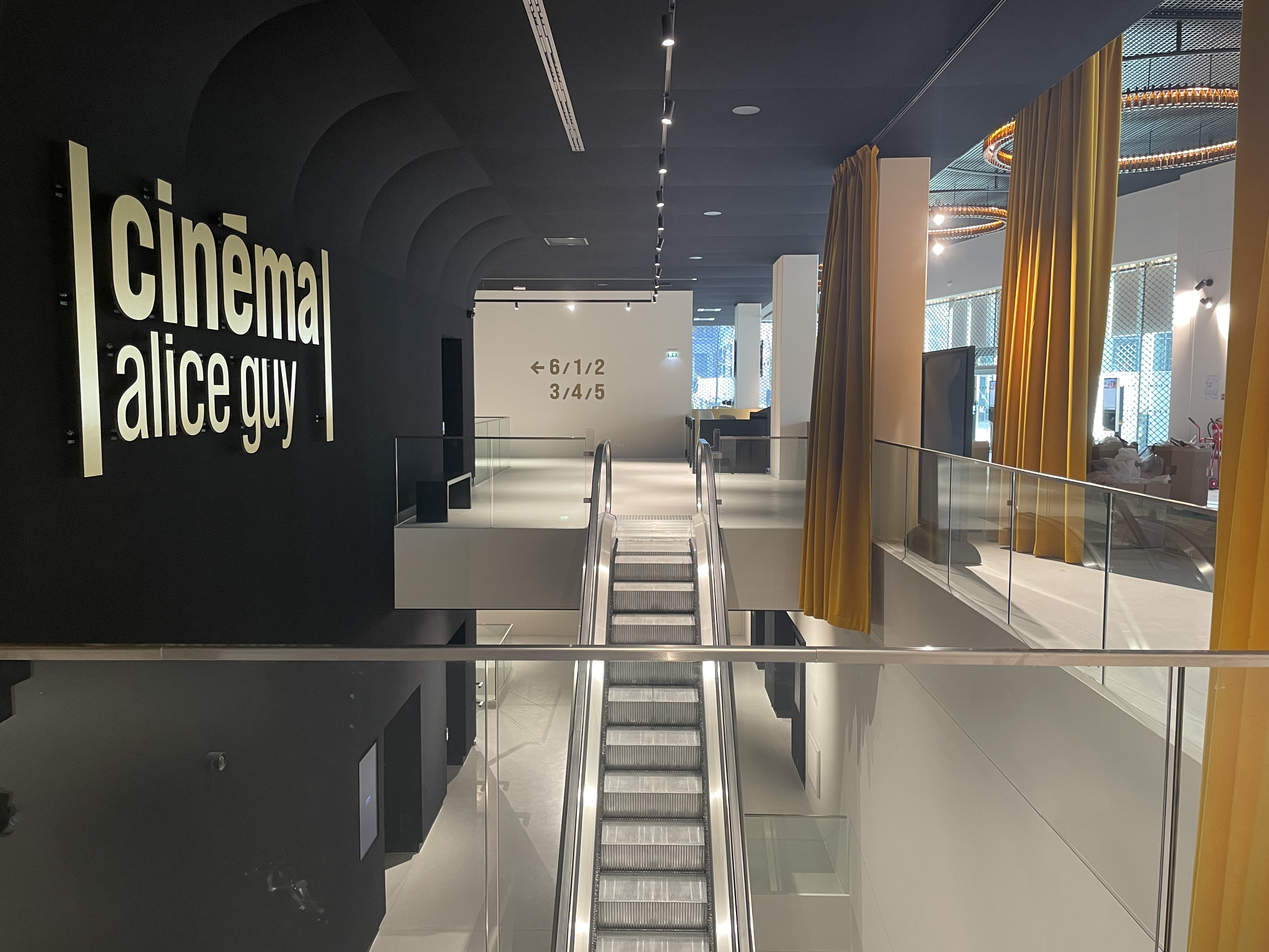 Bobigny n’a pas eu de cinéma fixe pendant sept ans. Sept ans entre la fermeture du Magic, l’ancienne salle, et ce mercredi matin où, dans le hall du tout nouveau cinéma Alice Guy, le personnel ouvre encore des cartons. La caisse vient d’être installée, l’alarme testée. Les grands rideaux jaune bouton d’or et les immenses suspensions du plafond sont, elles, déjà en place. « Demande le tournevis à Victor », lance l’une des employées à sa collègue. Au milieu du hall, Victor Courgeon, le directeur du lieu, va d’un poste à l’autre en salopette – Monsieur Cinéma est aussi, ces jours-ci, Monsieur Bricolage. Le rideau de fer se relèvera ce mercredi 11 mars pour accueillir ses premiers spectateurs. À quelques mètres du métro Pablo Picasso, six salles réparties sur 4 000 m² avec 816 places au total.