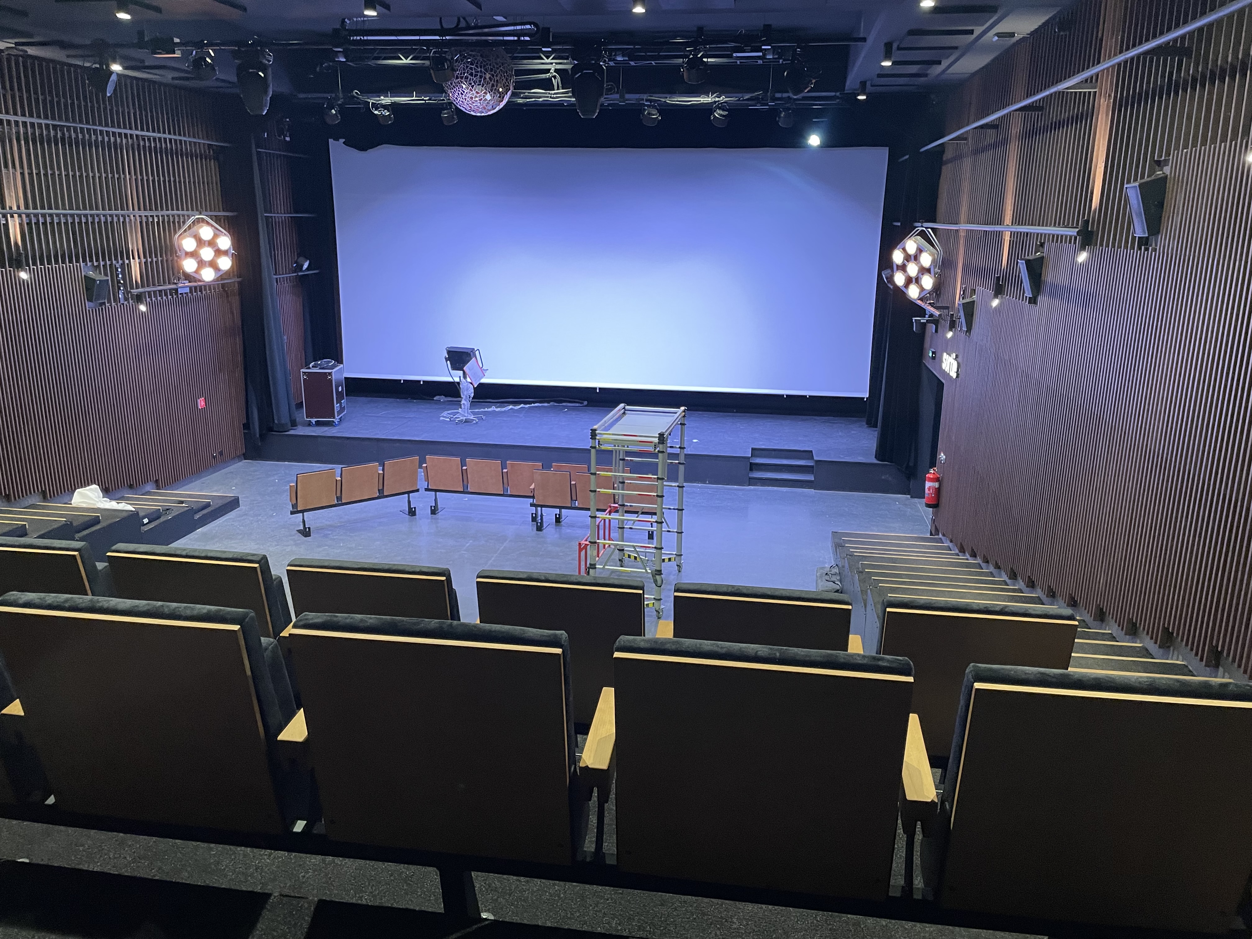 « C’est un cinéma « et » », résume Victor Courgeon, derrière lequel on trottine dans les couloirs. Un lieu de cinéma « et » de spectacle. Des blockbusters « et » du cinéma d’auteur. Il pousse la porte de la salle 6, modulable, qui accueillera ateliers et temps de médiation, ainsi qu’une installation pour la prochaine Nuit Blanche. Dans la salle 2, une boule à facettes au plafond et une tribune télescopique annoncent des concerts. Dans le hall, un café-librairie s’installera dans les semaines à venir. « Notre ambition est de faire dialoguer les arts, poursuit le directeur. Le cinéma, le spectacle vivant, la danse, le stand-up, la musique… Pour l’inauguration, nous accueillerons une expo de BD. L’idée est qu’ici tous les arts aient droit de cité. »