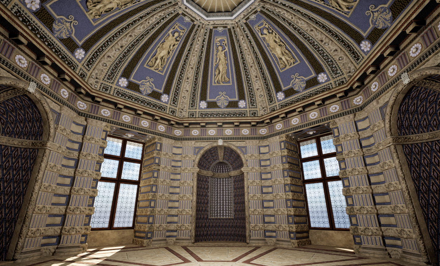 Dès le début de cette exposition de peintures, plans d’architectes et reconstitutions numériques, on est saisi par l’originalité et la beauté de cette création très étrange qu’était le Château Neuf. Dans une estampe colorée, on voit une sorte de cascade de pierre et de jardins. « Il y a une telle interpénétration qu’on a du mal à savoir où s’arrête le château et où commence le parc », dit Alexandra Zvereva. Sur une très grande surface : 700 x 300 m. « C’était un bâtiment absolument extraordinaire qui est devenu très vite célèbre », s’enthousiasme-t-elle. Et ses jardins, l’estampe le montre, étaient spectaculaires. Nous sommes largement avant André Le Nôtre, mais les « parterres de broderies » de buis taillé du Château Neuf étaient déjà très clairement des jardins à la française. Dans un magnifique tableau prêté par la ville d’Orléans, le château est représenté comme un paradis terrestre.