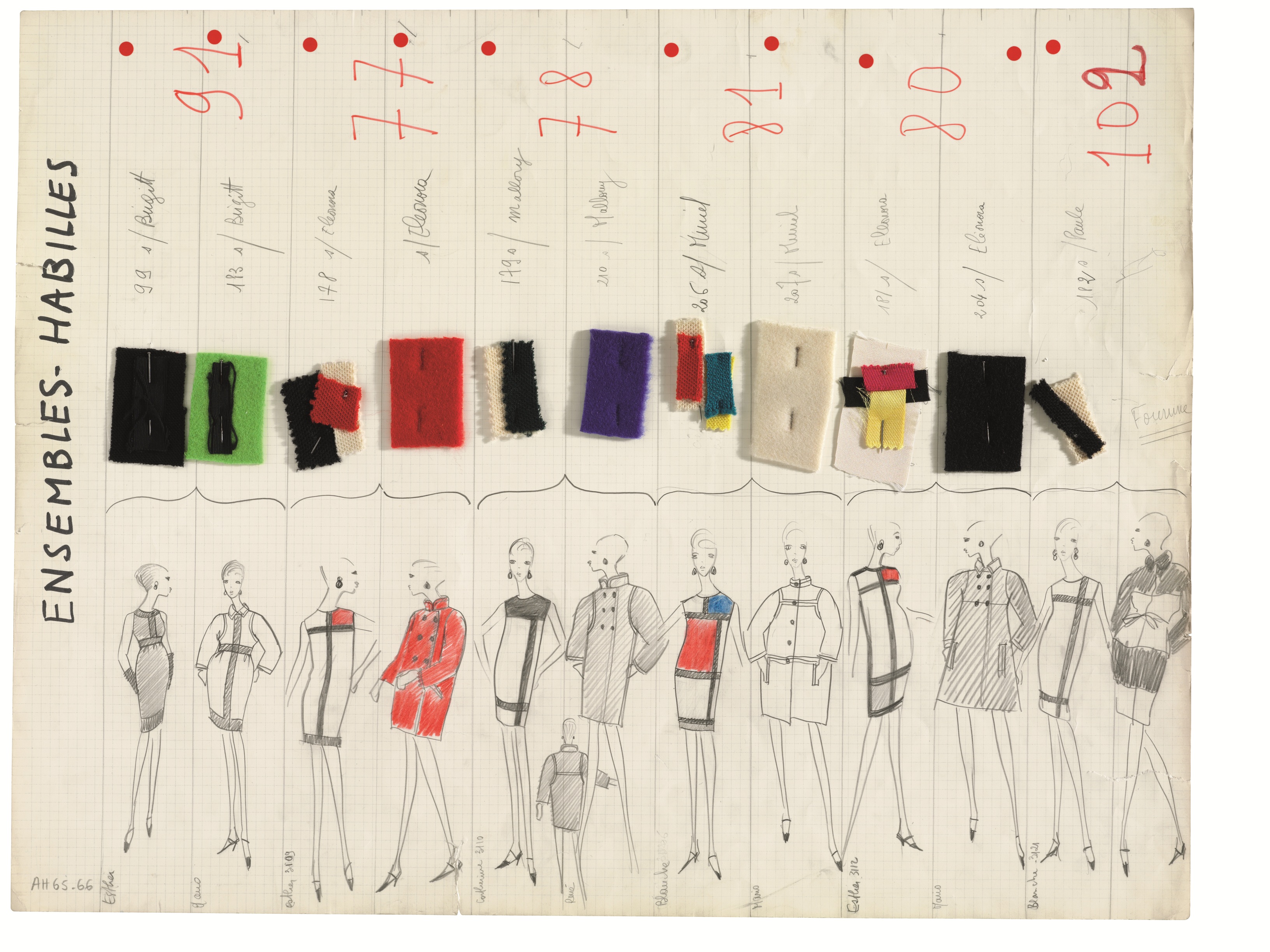 Planche de collection « Ensembles habillés ». Collection haute couture automne-hiver 1965.