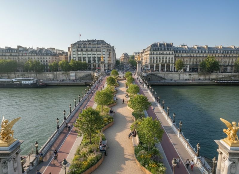 La start-up Merci Raymond vient de publier un communiqué aussi fleuri que ses projections IA : 37 ponts parisiens transformés en « parasols naturels », 50 000 plantes, 20 000 m² d’espaces verts suspendus au-dessus de la Seine, gain thermique annoncé entre -2 °C et -4 °C. Le tout à quelques jours des élections municipales. L’intention est louable. Le timing, lui, se voit.